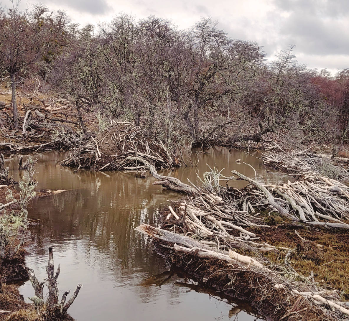 Los ecosistemas de Norteamérica tuvieron 6 millones de años para evolucionar con el castor de hoy, y millones más con sus antecesores. Por ende, muchas especies se benefician de sus construcciones: son hábitats críticos para diversas comunidades de invertebrados, aves, anfibios, reptiles, peces y mamíferos (FIGURAS 2, 3). En cambio, los castores llevan menos de 100 años en TDF. Sus impactos, en vez de ser una continuación de una trayectoria evolutiva de millones de años, son perturbaciones. Por ejemplo, en su entorno natural, los castores generan diversos microhábitats acuáticos que promueven más diversidad de invertebrados. Pero en TDF, introducen un exceso de materia orgánica al agua, aumentando el alimento para los invertebrados, pero disminuyendo su diversidad por tapar los microhábitats de los que dependen. Este patrón, en el que las castoreras fomentan la dominancia de distintos grupos y cambian la composición de la comunidad, se ve repetido en las aves y especialmente en las plantas, donde sus actividades permiten el establecimiento de especies invasoras o exóticas.