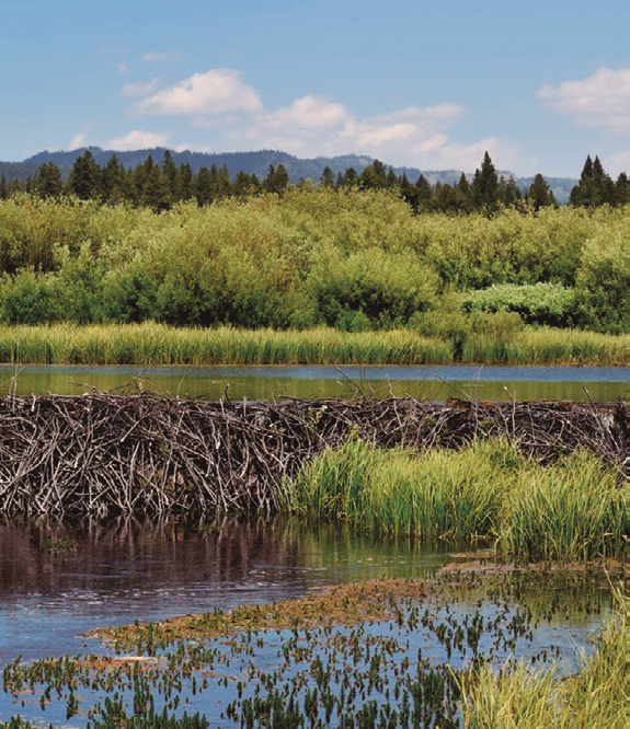 E. Una castorera en el parque nacional Grand Teton, EEUU, con abundante vegetación herbácea. Por detrás se observan numerosos sauces (Salix spp.).