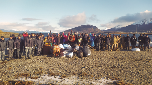 sobre las intenciones de ciertos sectores políticos de vetar la ley que prohíbe la salmonicultura en el canal Onashaga. También, se proyectaron los documentales “Gardening Marine Forest”, “Blue Whales, el retorno de las gigantes”, “Sonic Sea” y “Península Valdés, cuna de la Patagonia”. El 8 de junio se realizó una limpieza en la playa de Bahía Golondrina, organizada en conjunto con “A limpiar Ushuaia”. Participaron 60 personas pertenecientes a la Armada Argentina y más de 30 voluntarios (FIGURA 3), que se acercaron a recolectar basura. Se juntaron 483 kg de basura, destacándose 14 neumáticos, 3 tachos metálicos de 200 litros y 7 botellas plásticas rellenas con palillos de hisopos.